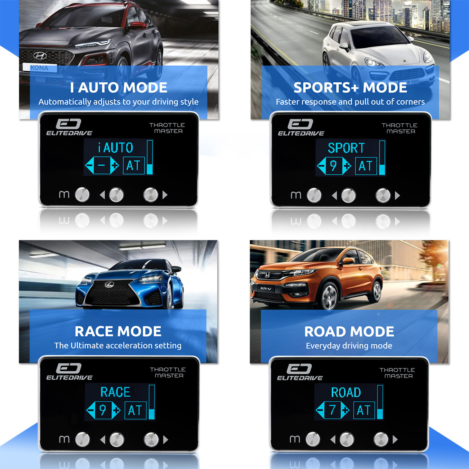- iAUTO MODE: is your most advanced mode, intelligently adapting to your driving style in real-time, for the smoothest most responsive driving experience